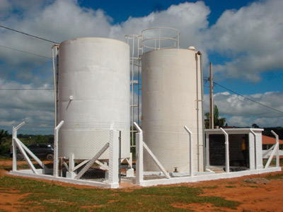 O sistema de reservação é constituído por 01 (um) reservatório de distribuição apoiado de 150 m3 na ETA, e 01 (um) reservatório capacidade de 20 m3 para lavagem de filtros e consumo na ETA, 03 reservatorios apoiados com capacidades de 50, 40 e 20 m3 e ainda 4 reservatorios elevados, sendo 02 de 10 m3 e 02 de 20 m3 ; todos instalados em pontos estratégicos como forma de abastecer a cidade por setores.