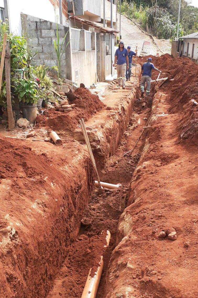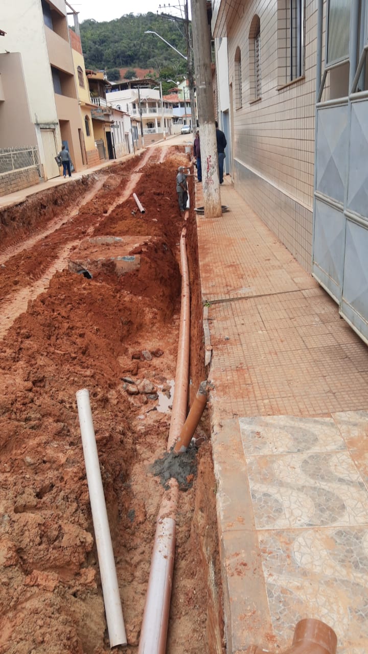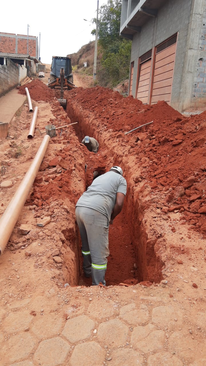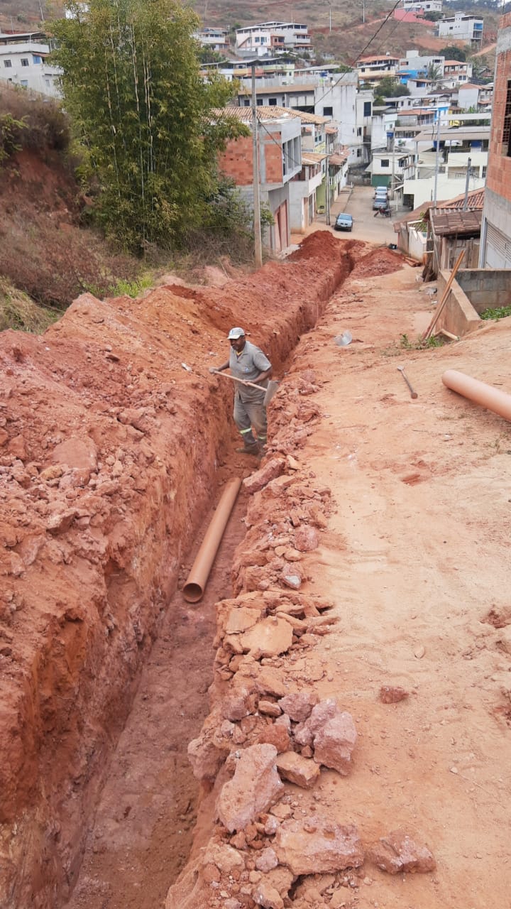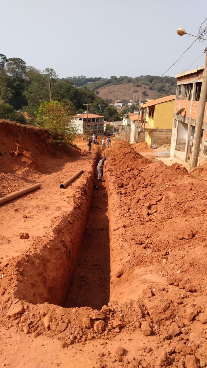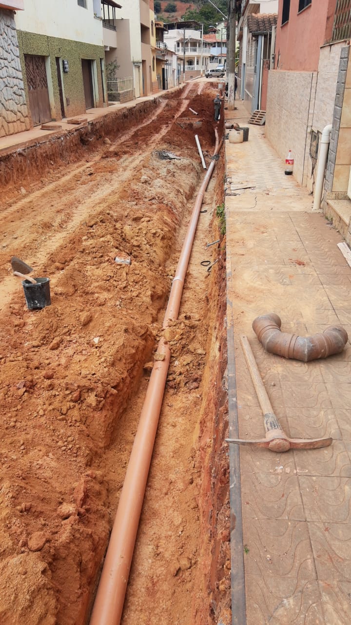 Construção de rede de esgoto na Rua Joaquim Clemente Guimarães