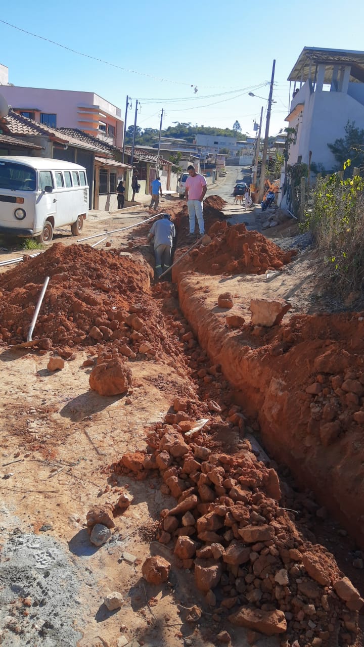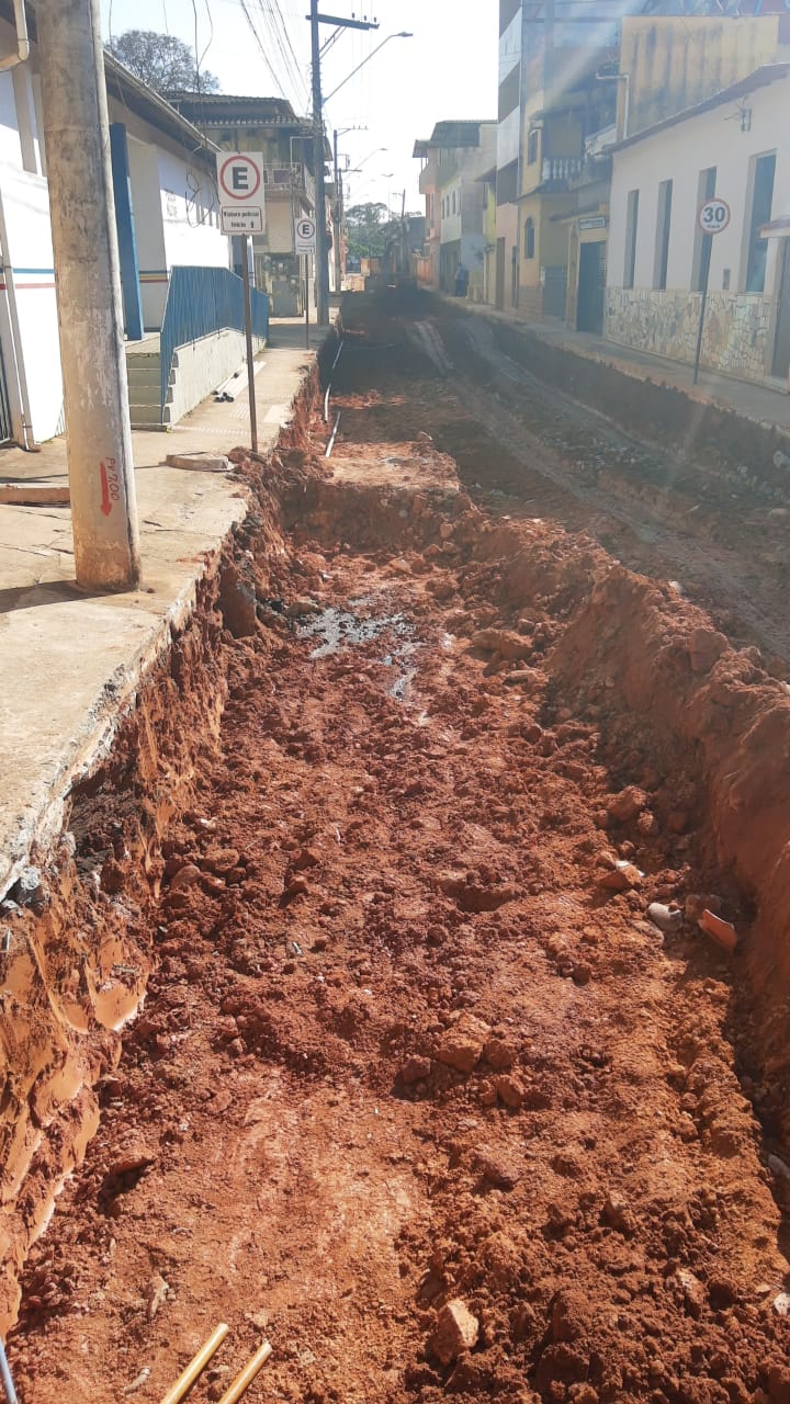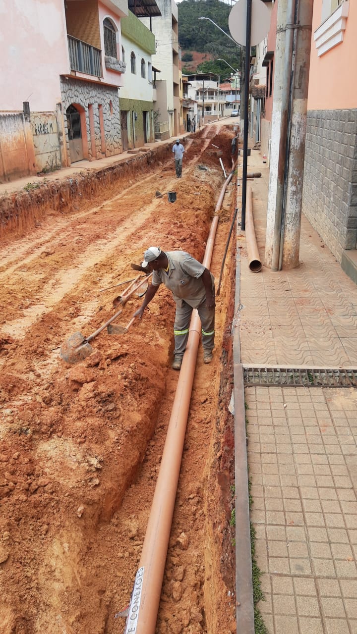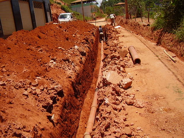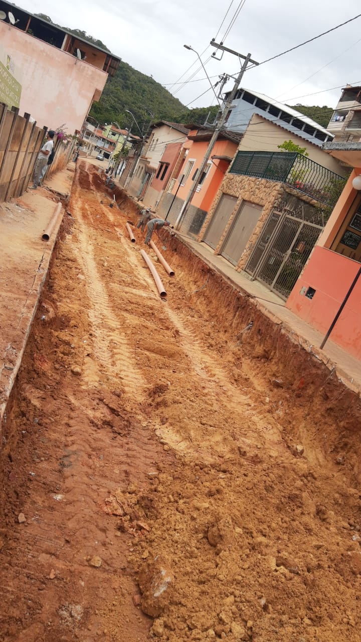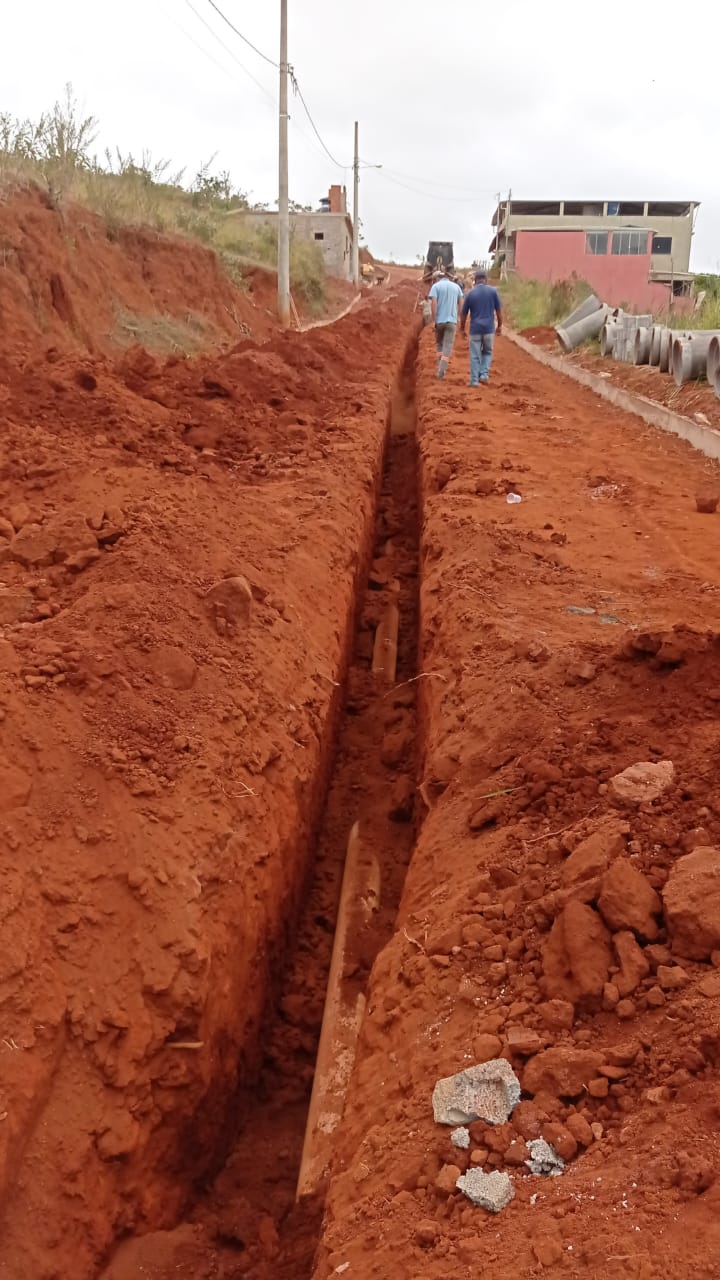 Construção de rede de esgoto na Rua Joaquim Clemente Guimarães