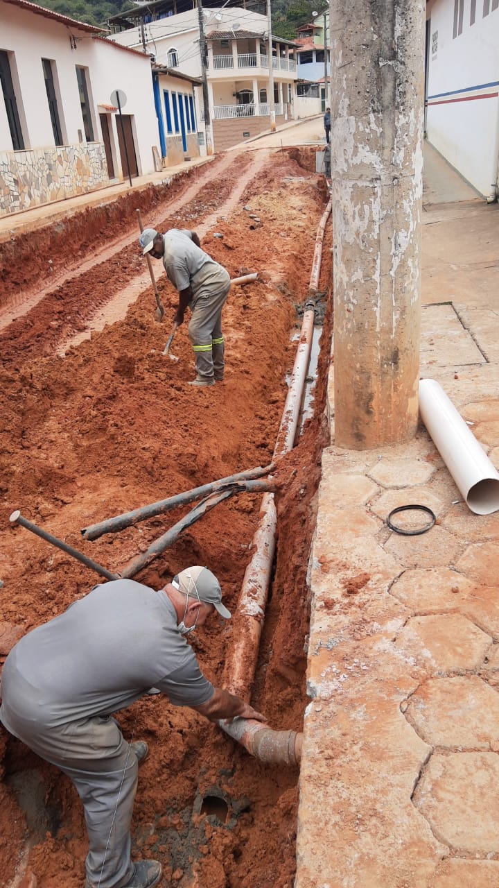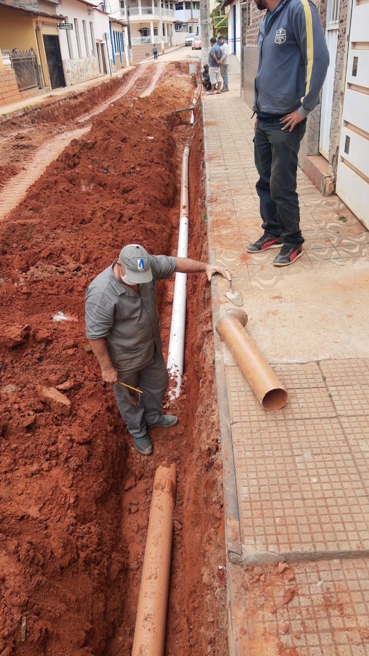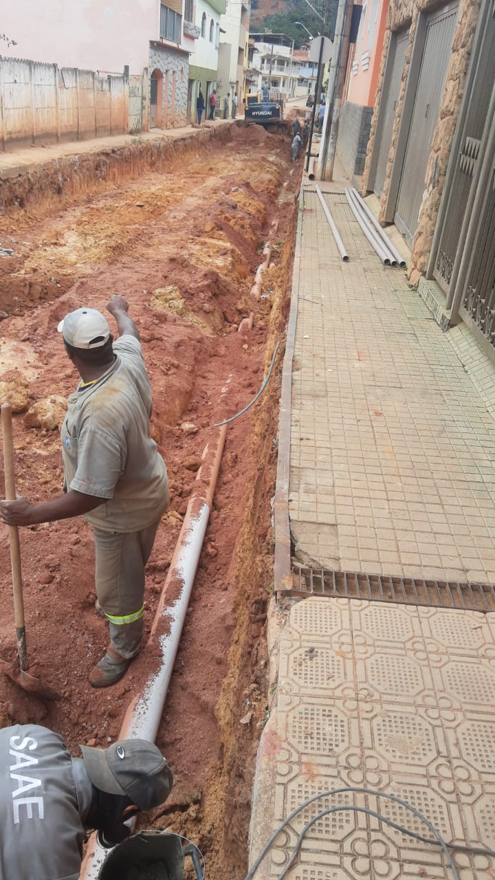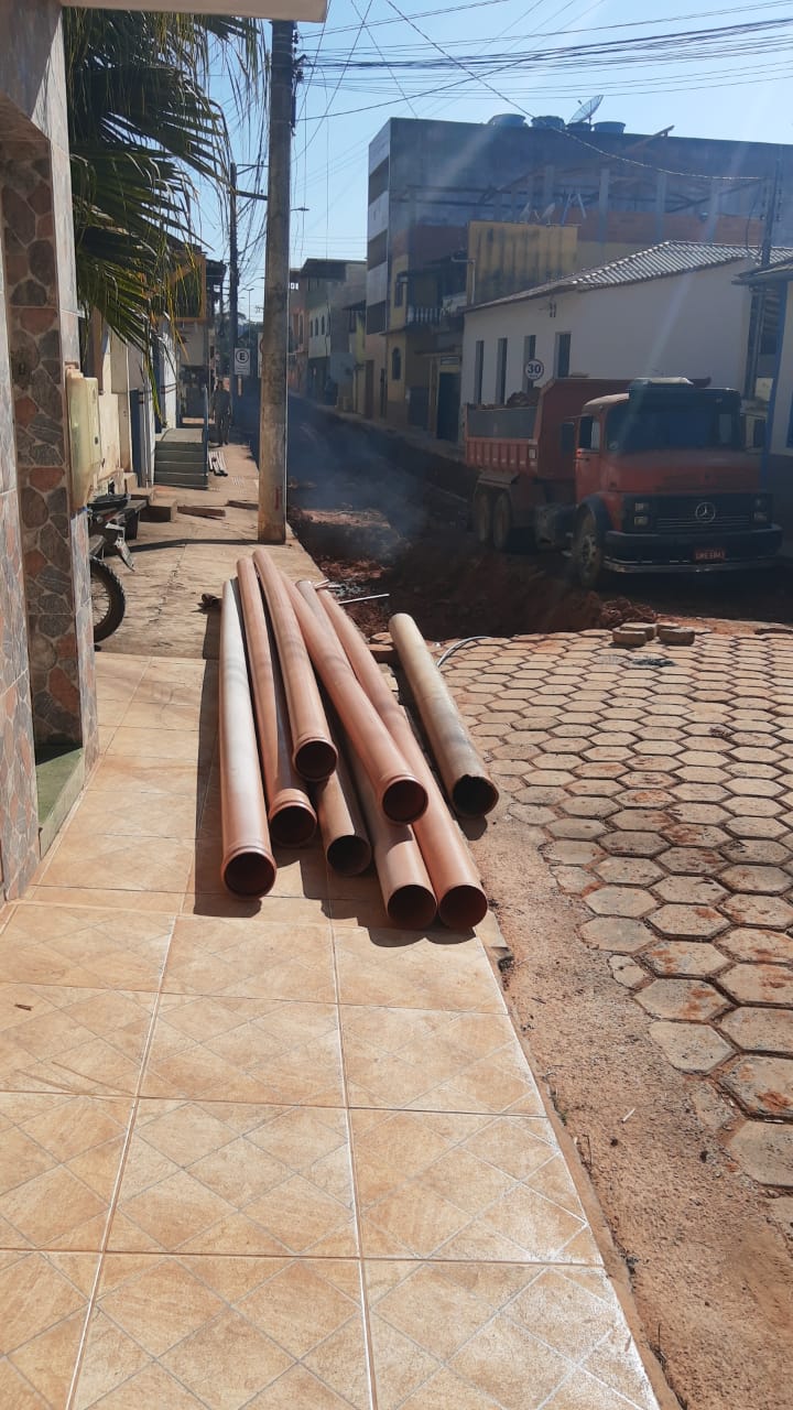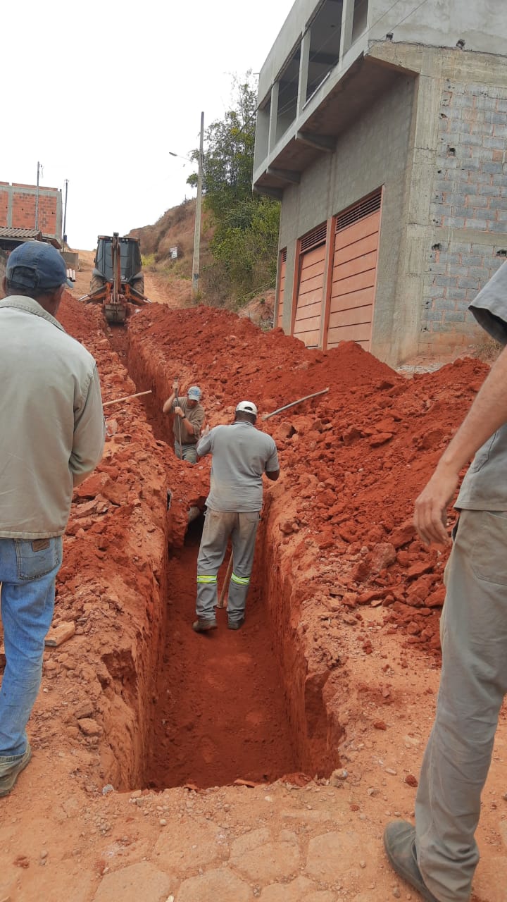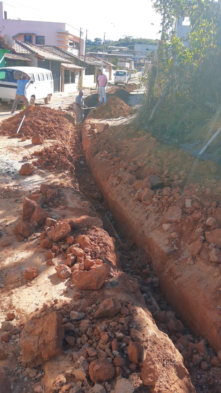 Construção de rede de esgoto na Rua Joaquim Clemente Guimarães