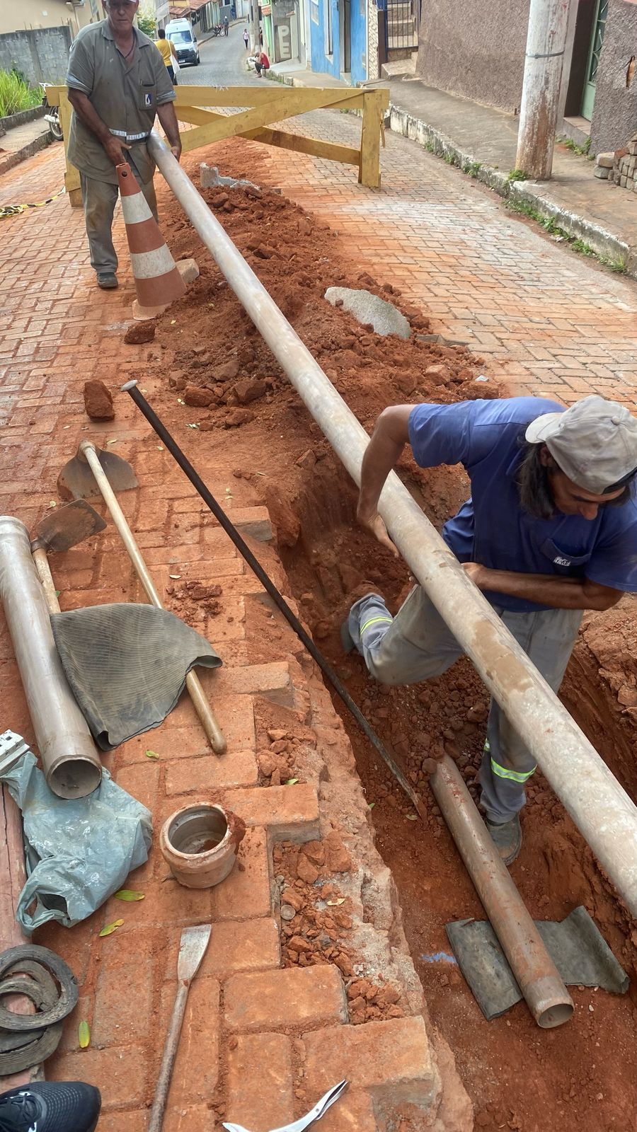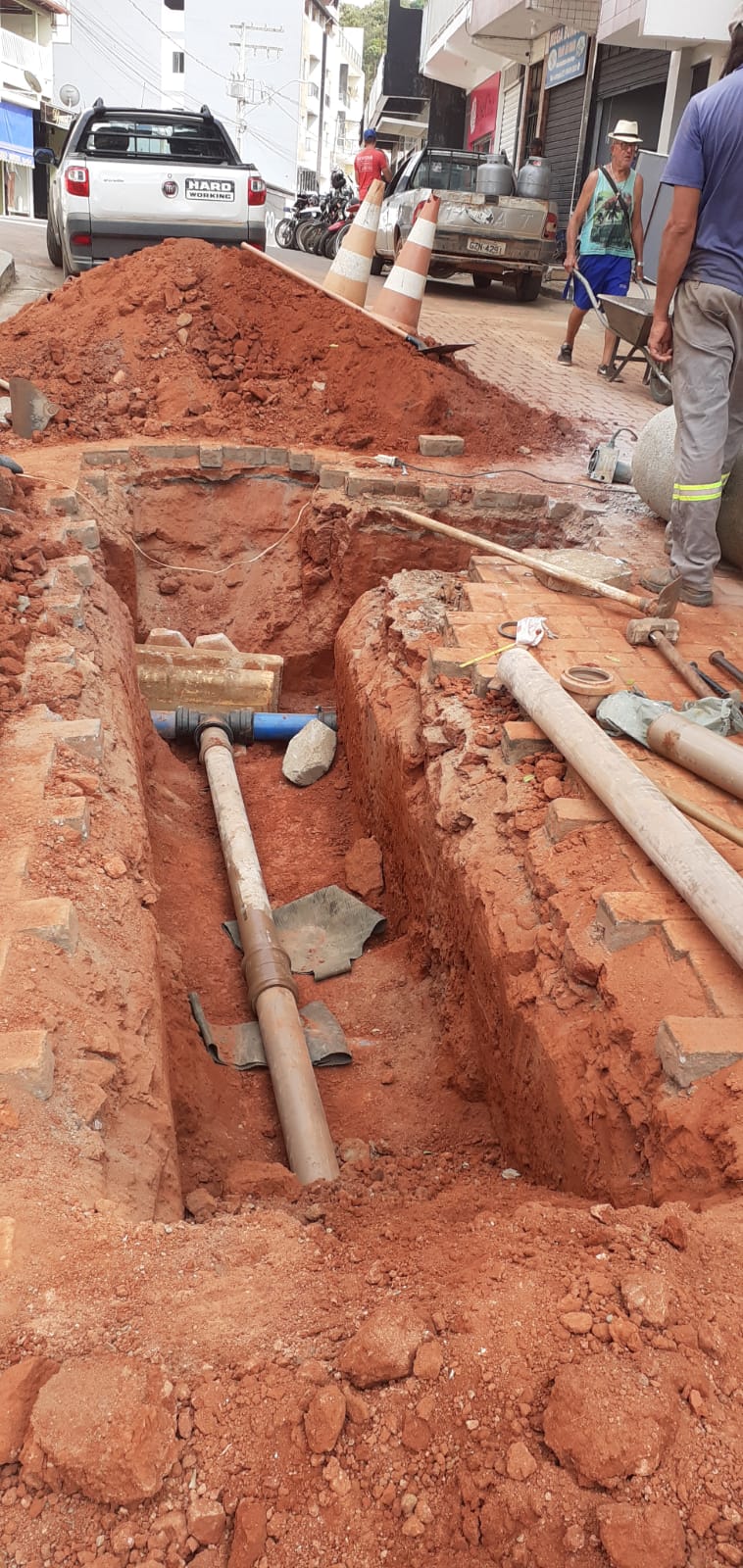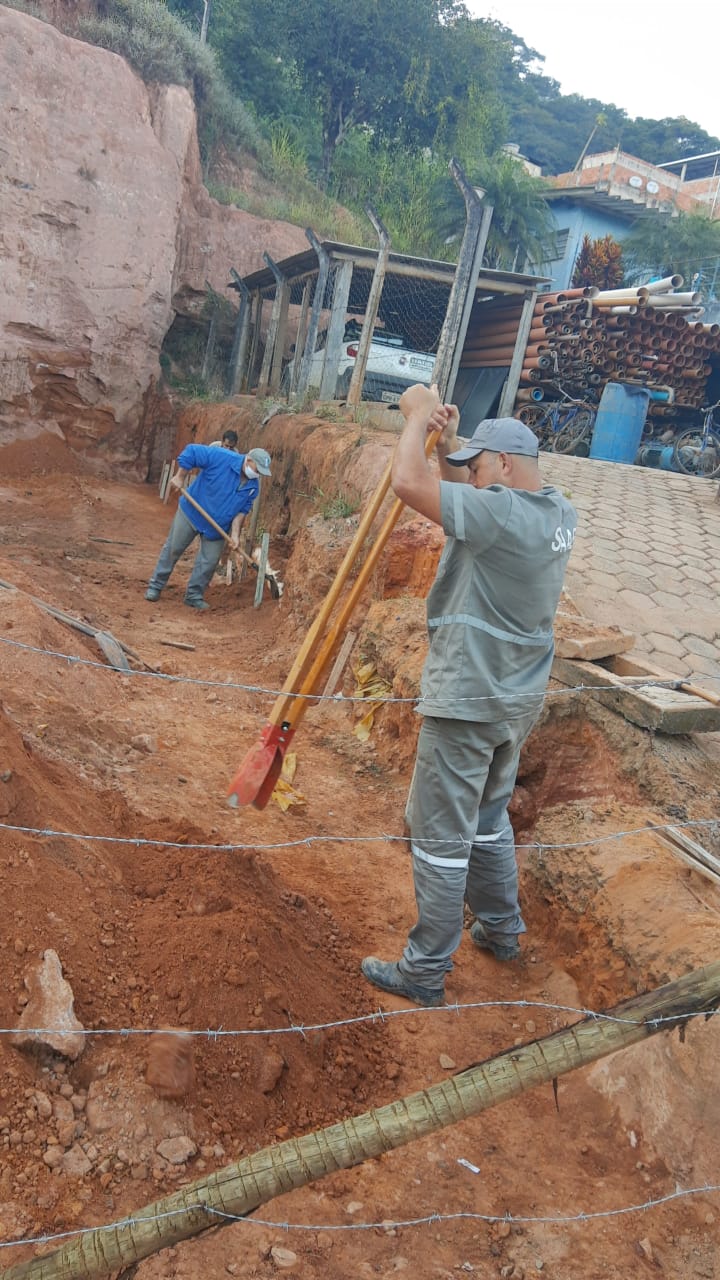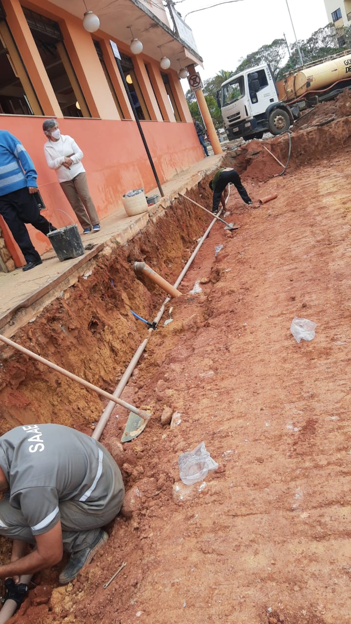 Substituição de 45 metros de rede de esgoto na Rua São Vicente - Córrego dos Lanas